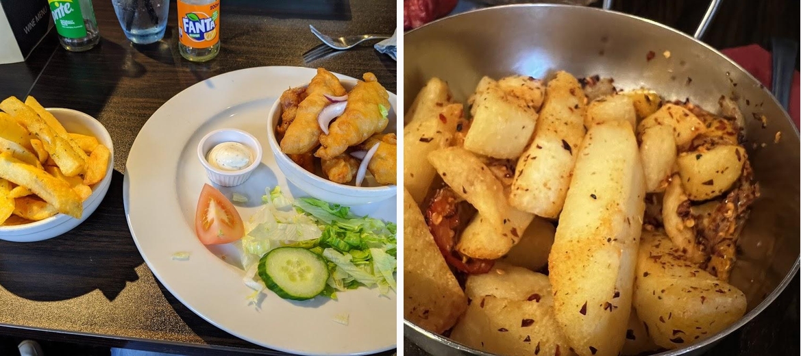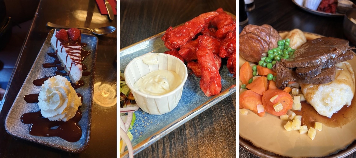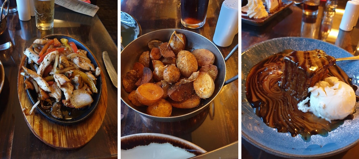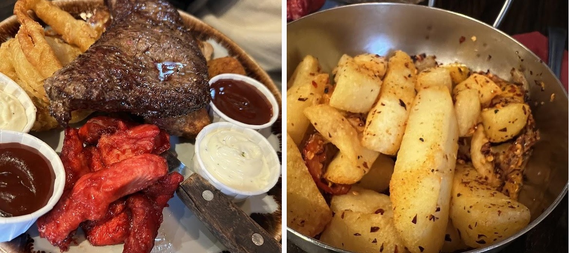 You can't go wrong with the 8oz. Sirloin Steak or the Sizzling Trio of Meats. For something lighter, the Atlantic Prawns and the Homemade Lasagne are crowd-pleasers. Don't skip dessert—try the Chocolate Fudge Cake.